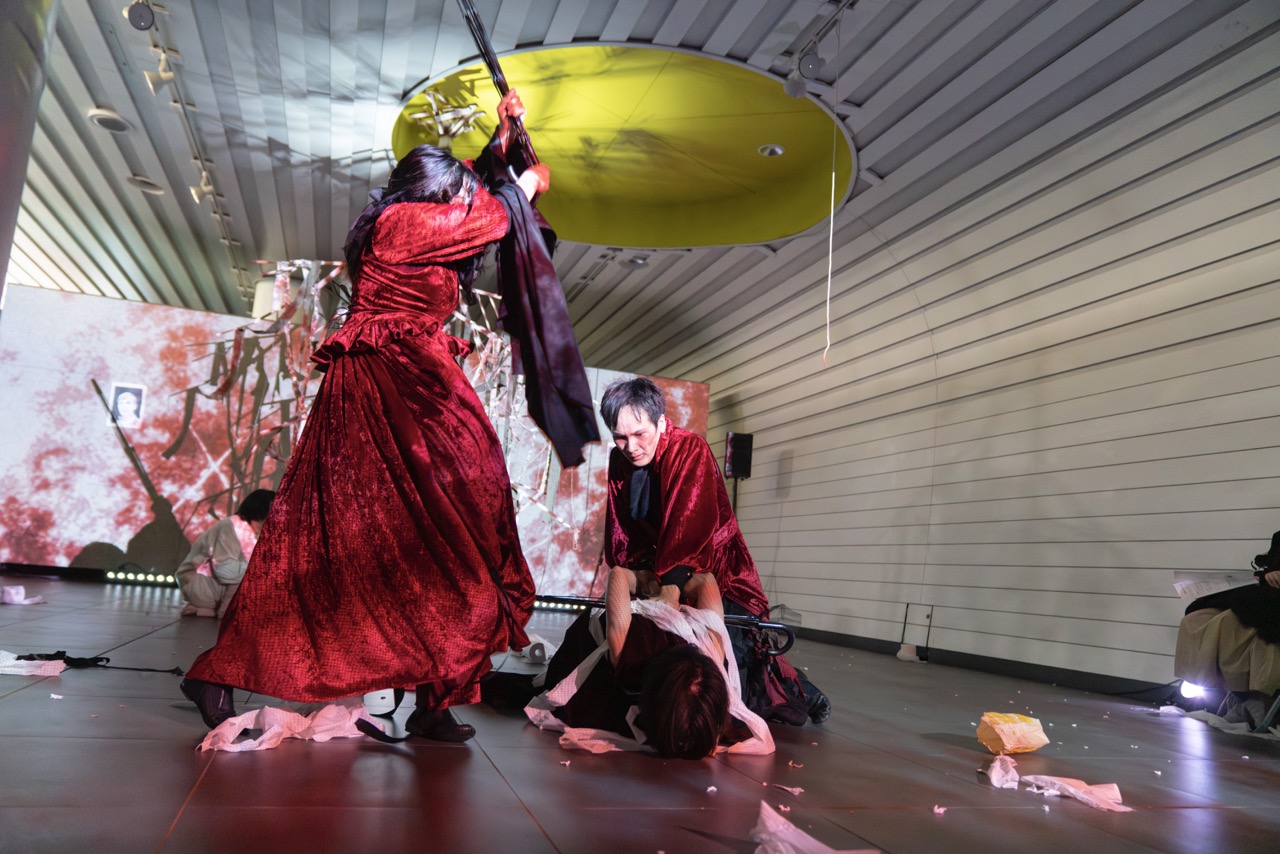 ・一歩入った瞬間から、異世界に迷い込んだような感覚で、役者のみなさんのエネルギーと迫力に圧倒されました。イチ観客でありつつ、作品のなかに迷い込んでいるような、それぞれの役の苦悩や辛さを疑似体験しているような、そんな感覚になりました。
